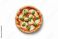 • Delicious margherita pizza with fresh basil and mozzarella on a white background