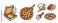 • Collection of cartoon pizza illustrations featuring pepperoni and margherita pies, a delivery box, chef hat, cutter, and fresh ingredients like tomato, cheese, and mushroom in a vibrant comic style
