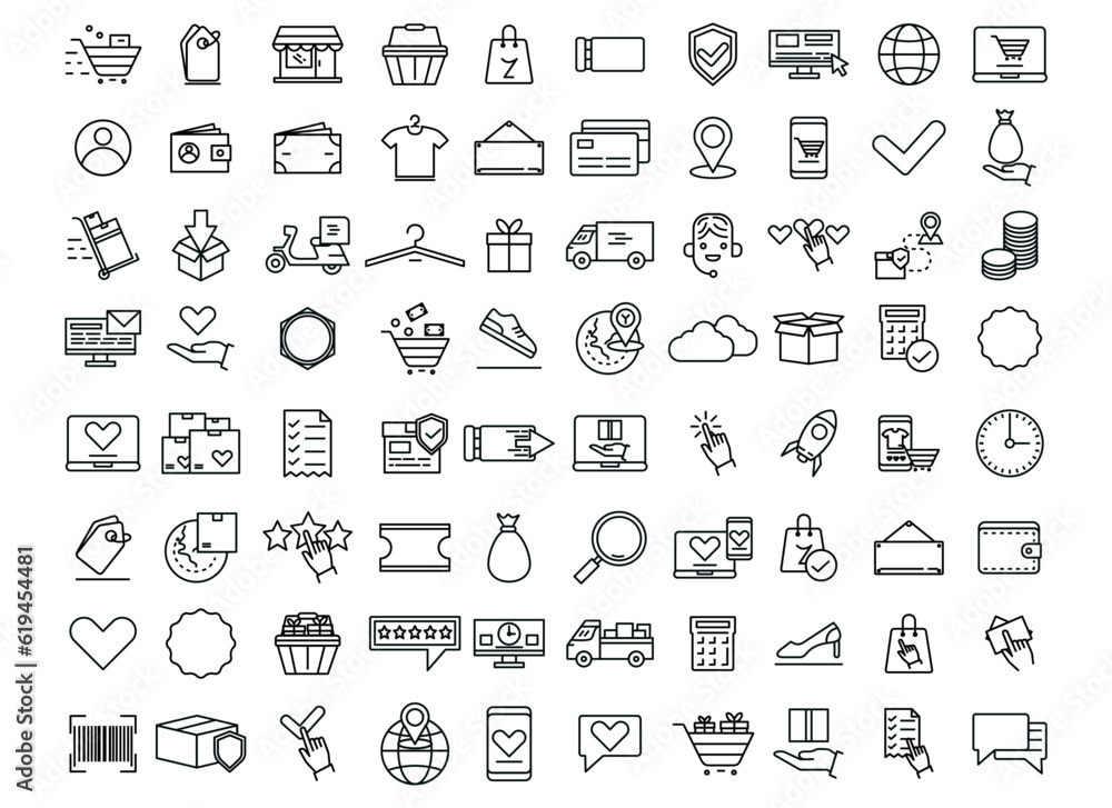 Plakat do Pizzerii - Shopping E-Commerce and retail line icons collection set. Shopping, gifts, store, shop, delivery,... #619454481