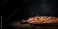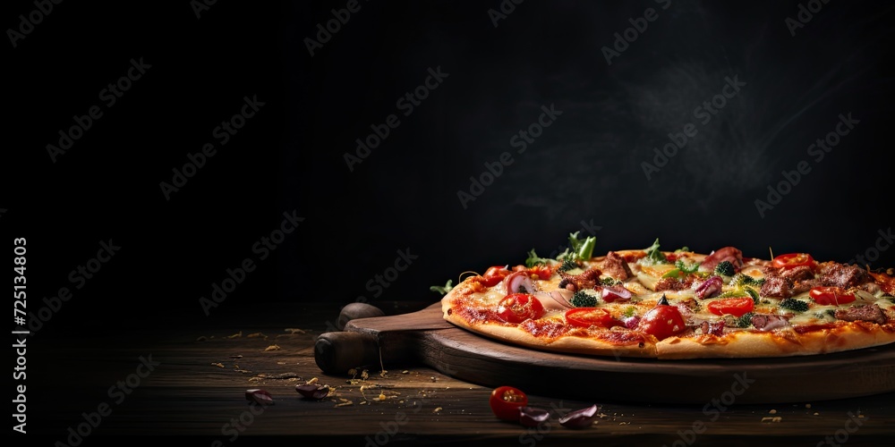 Plakat do Pizzerii - Dark background with wooden pizza tray #725134803