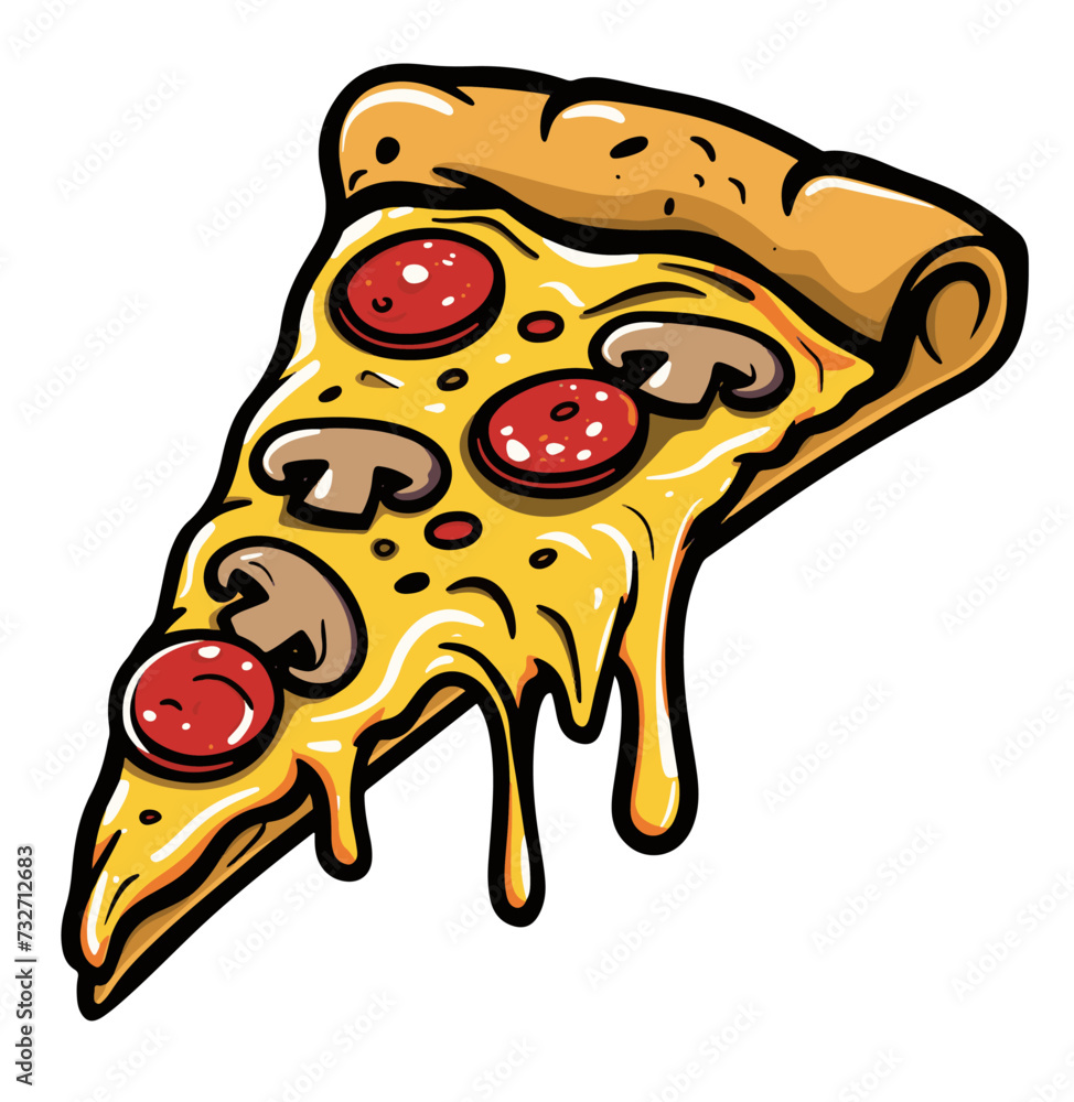 Plakat do Pizzerii - An individual slice of thin-crust pizza with dripping yellow cheese and pepperoni and sliced... #732712683