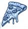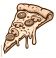 • An individual slice of thin-crust pizza with dripping yellow cheese and pepperoni and sliced mushroom topping