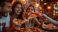 Plakat do Pizzerii - Friends sharing pizza dinner #894441202