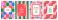 • Merry Christmas and Happy New Year greeting card, banner, poster, cover templates. Modern bright Xmas design with doodle elements, frames, stripes and checkered pattern, waves, snowflakes, stars.