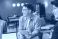 • Smiling colleagues discuss ideas during a cheerful meeting in a trendy cafe