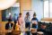 • Group of young professionals engaged in a discussion at an office table