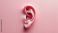 • Close up of pink human ear on matching pink background. This 3D render illustrates organ of hearing, its delicate structure. It symbolizes communication, awareness in various conceptual contexts.