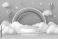 Plakat do Pokoju Chłopca - 3d kids podium with sky clouds and rainbow, floating hot air balloons and twinkle stars. Cartoon... #1836276353