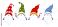• Horizontal festive banner with a group of holiday gnomes and playful elves peeking around a large blank sign. Perfect for greeting cards, New Year messages and childrens holiday designs.