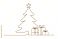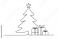 • Christmas tree with a star and gift boxes drawn in black continuous line art, creating a minimal design for celebrations