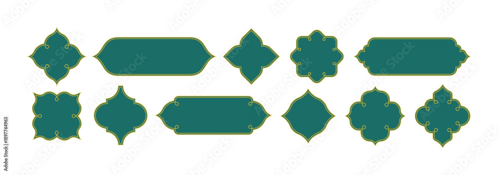 • Islam Frame Shape Vector Design. Ramadan Vintage Pattern. Elegant Muslim Architectural Element with Golden Accents for Festive Celebrations.