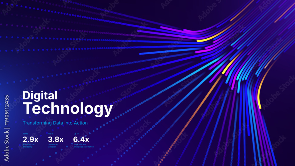 Plakat do Pokoju Chłopca - High-Speed Digital Data Stream with Flowing Particle Lines and Dynamic Light Trails Across an... #1909112435