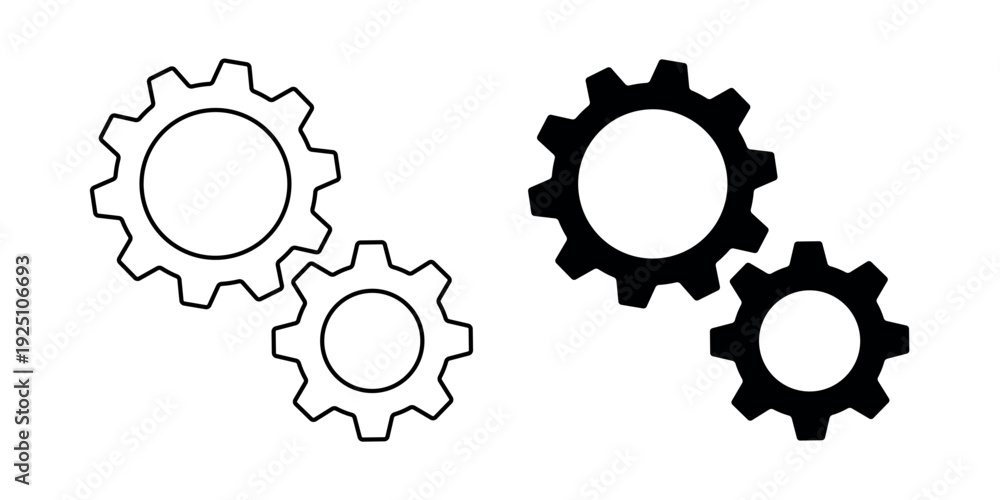 • Composition of two cogwheel gears pictogram and line editable stroke. Vector