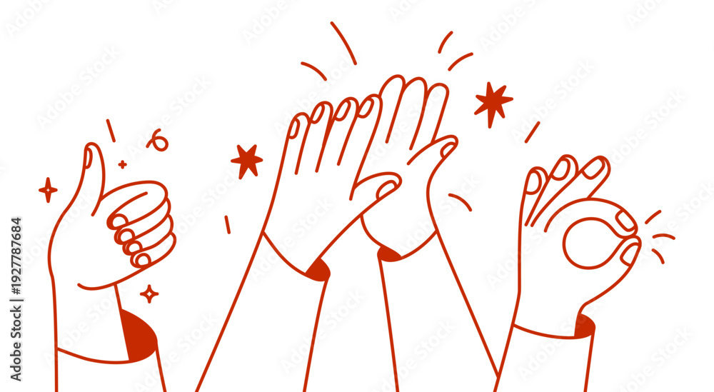 • Vector simple linear illustration, hands and gestures, hand drawn illustration, poster, logo, print design template, business cooperation and teamwork concept