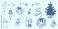 • Retro doodles of Christmas party. Vintage new year icons dinner meals in chalk and crayon drawing. Xmas party elements for poster and greeting cards. Hand drawn holiday vector illustration