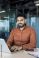 • Indian businessman working on a laptop, standing at a desk in a contemporary office setting with glass walls, reflecting a positive attitude and professional success while engaging in business tasks