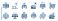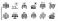 • Set of solar panel icons representing clean energy, photovoltaic systems and sun-powered electricity. Solid vector icons collection.