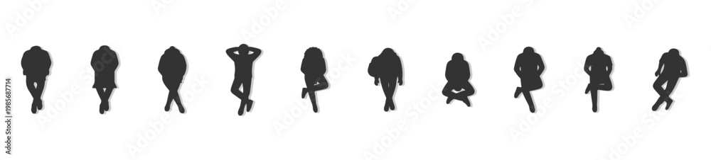 Plakat do Pokoju Dziewczynki - Top View Sitting People Silhouette Vector Set, Overhead Perspective Solid Black Figures for... #1985687714