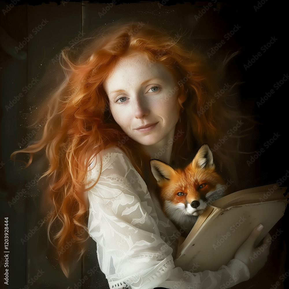 Plakat do Przedszkola - Rudowłosa dziewczyna z czerwonym lisem, portret #1203928444