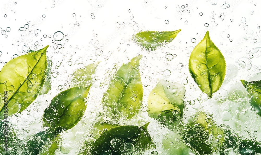 Plakat do Restauracji - Green Tea Leaves Submerged In Sparkling Water #1136885894
