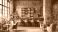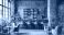 • Luxurious bar interior with yellow chairs, plants, and a rustic-industrial design.