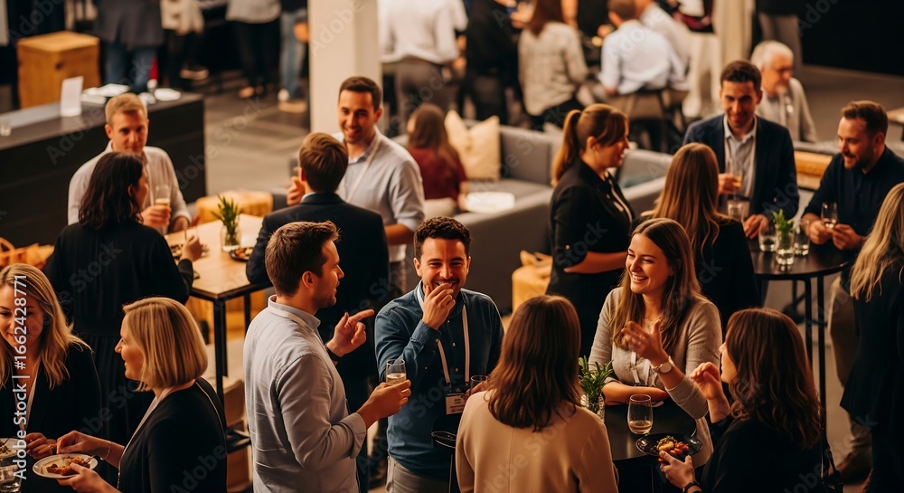 Plakat do Restauracji - A high-angle shot of a lively networking event. Professionally dressed people converse and mingle... #1662428771