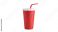 • Red beverage cup with lid and straw isolated on black background for drinks and fast food lovers
