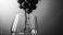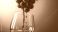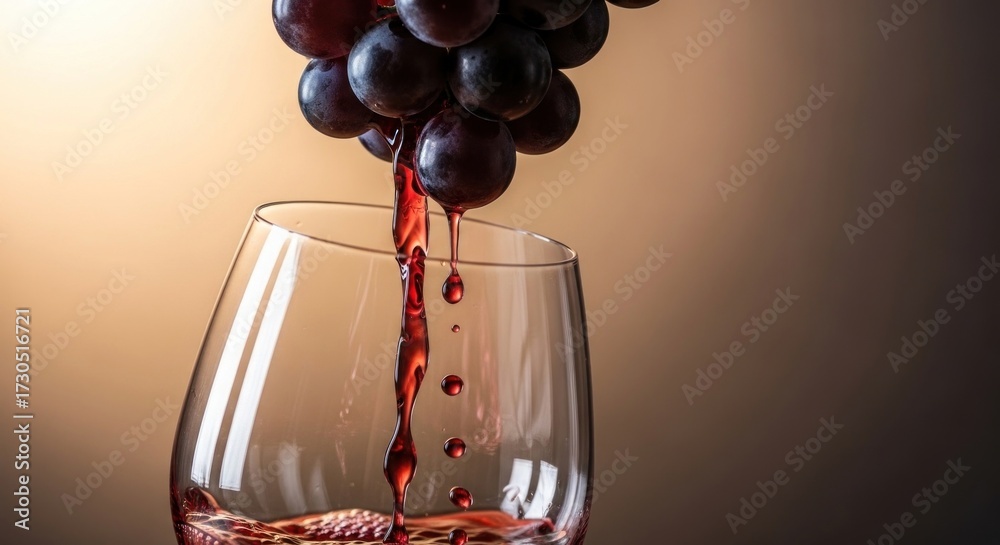 • A glass of red wine with a cluster of grapes hanging over the rim.