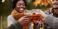 • Group of friends toasting with cider in a festive autumn setting Generative AI