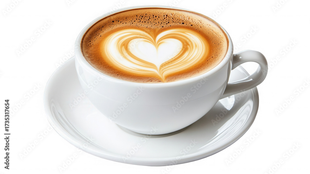 Plakat do Restauracji - Cup of cappuccino with heart shaped latte art isolated on transparent background #1735317654