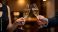 • Champagne cheers at a chic evening event — couple in formal attire clinking sparkling wine glasses, warm ambient light and shallow depth for upscale celebration visuals