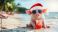 • Funny piglet wearing a Santa Claus hat and sunglasses enjoying a refreshing cocktail on a beautiful tropical beach during christmas holidays, creating a humorous and festive scene