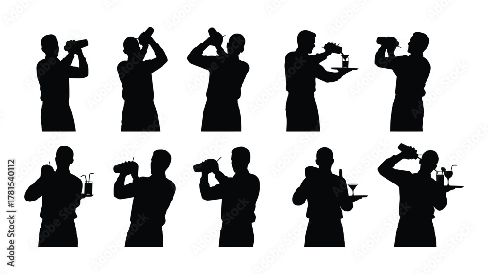 Plakat do Restauracji - Bartender silhouettes collection isolated on white background, Vector #1781540112