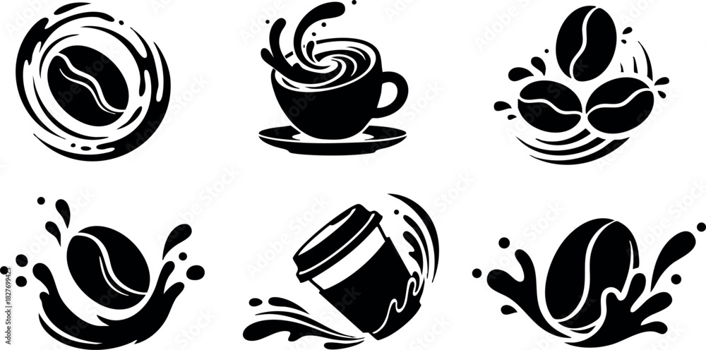 • Coffee beans coffee cup splash coffee cup coffee beans splash coffee cup splash coffee beans logo design vector illustration
