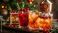 Plakat do Restauracji - Festive holiday cocktails with garnishes of cranberries and rosemary on a tray #1844688794