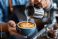 • Barista creates latte art while pouring milk into coffee at a cafe in the morning
