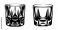 • Two clear glasses for whiskey or spirits showcasing distinct cut patterns and faceted bases for drinking