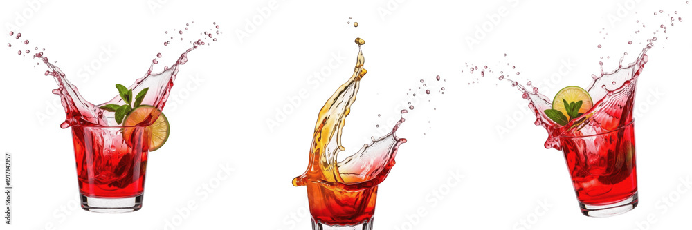 • Cocktail splash isolated on white background, mixed drink liquid droplets, alcoholic cocktail pour, tropical cocktail splash, cocktail glass photography, cocktail motion illustration, beverage effect