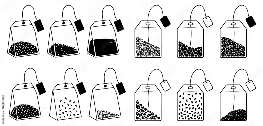 Plakat do Restauracji - Tea bags illustration collection of black and white tea bag set vector illustration, Tea bag... #1923334273