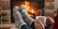 • Person enjoys a hot beverage by the fireplace in a cozy setting during winter season