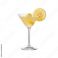 • Elegant martini glass filled with citrus cocktail garnished with lemon slice