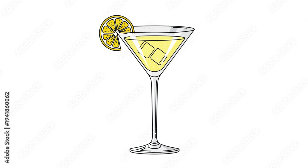 • A hand drawn illustration of a yellow cocktail in a martini glass