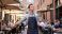 Plakat do Restauracji - Male waiter serving food tray in outdoor restaurant setting #1943099612
