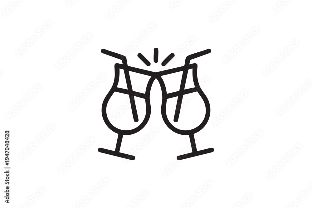 • Cheers cocktail drinks outline icon, clinking beverage glasses symbol representing bar celebration nightlife party and social gathering concept