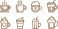 • Variety of coffee and beverage icons in line art, featuring steaming cups, latte art, and takeaway drinks for cafes and menus.