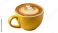 • Delicious hot latte with beautiful heart-shaped latte art in a vibrant yellow ceramic mug