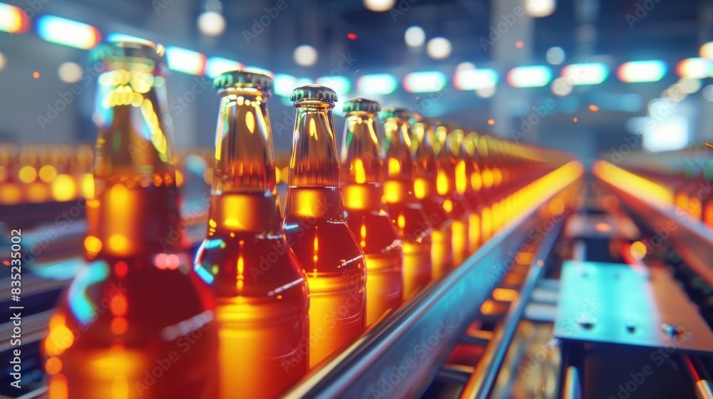 Plakat do Restauracji - Beer bottles on the conveyor belt, alcohol, beer, drink, beverage, bottles, cold, glass, brewery,... #835235002
