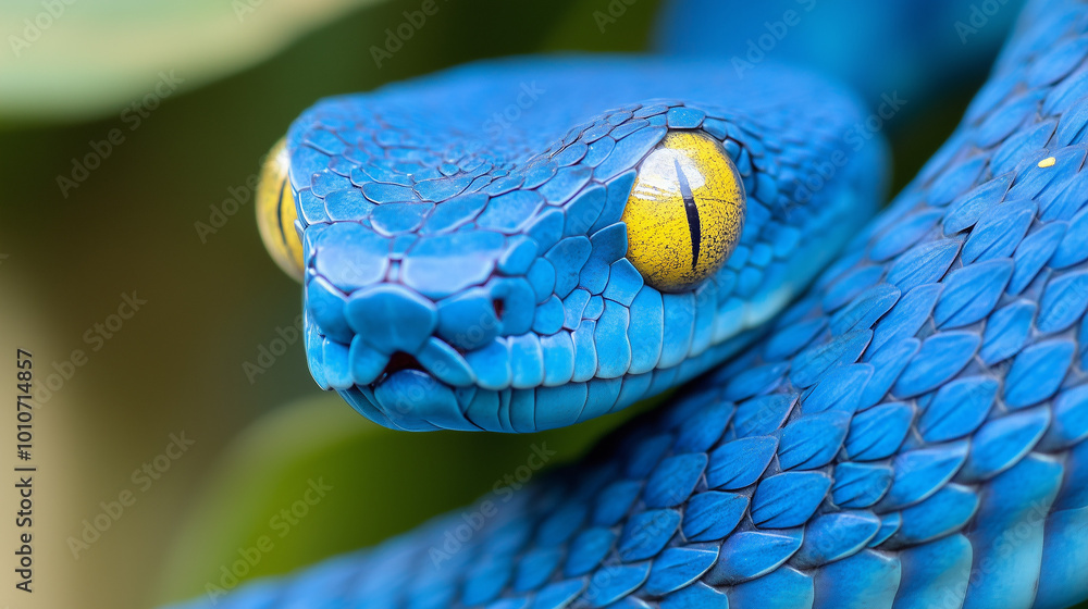 Plakat do Salonu - Głowa niebieskiego węża ukazuje szczegółowe tekstury jego łusek, które sprawiają, że wygląda... #1010714857