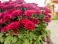 Plakat do Salonu - Żywe, czerwone chryzantemy (Chrysanthemum spp.) w pełnym rozkwicie wypełniają doniczkę na tle... #1874733049