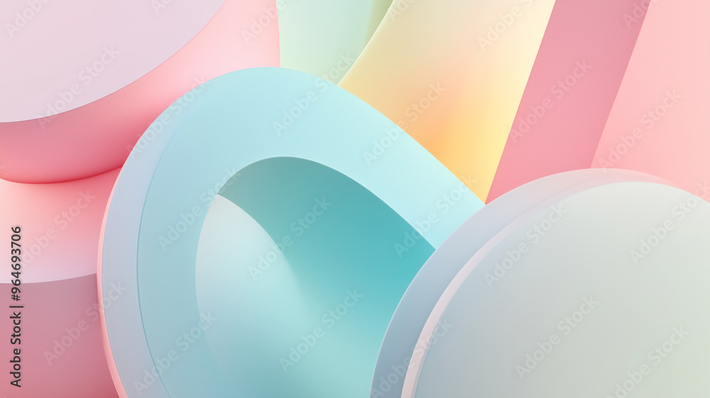 Plakat do Salonu - elikatne pastelowe kształty w trójwymiarowej formie tworzą harmonijne, abstrakcyjne tło. Gładkie... #964693706